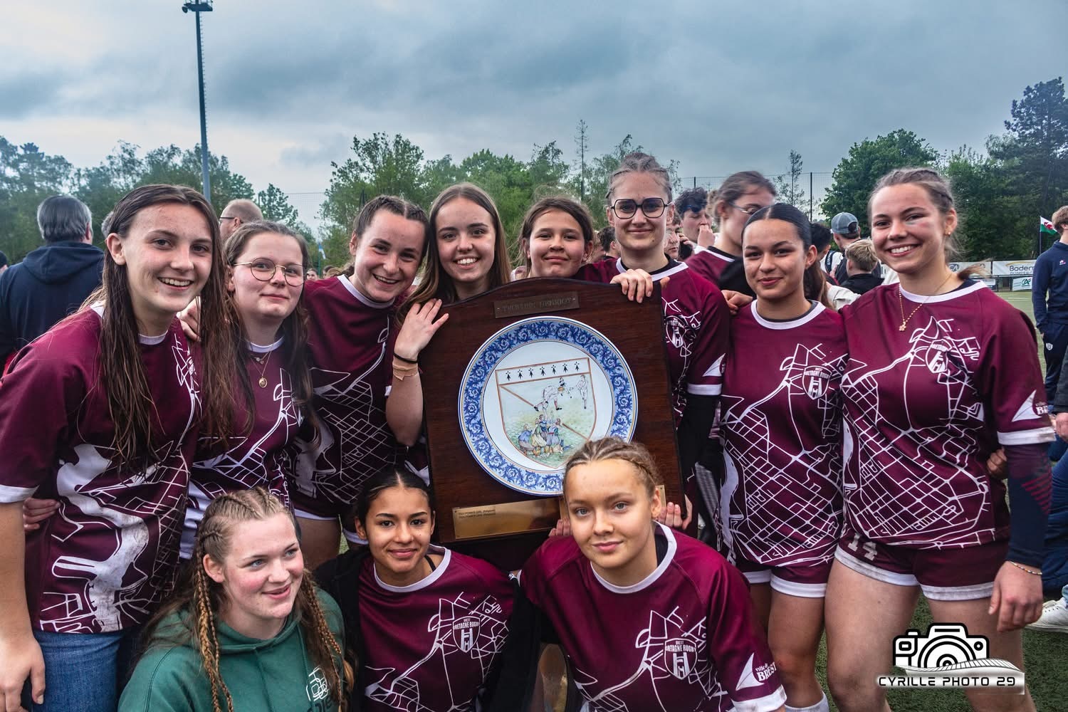Retour sur la finale du Tournoi de Cornouaille Nos cadettes ont brillamment conclu leur saison ce week-end en s’imposant 26 à 10 face à l’équipe de Kaerell/CD22 lors de la grande finale du Tournoi de Cornouaille. Une rencontre intense, riche en jeu et en émotions, ponctuée de sourires et d’une belle victoire collective. Félicitations à l’ensemble de l’équipe pour cette performance remarquable ! 👏 Nous adressons également nos sincères remerciements à nos entraîneurs, Gurvan Hernot, Stéphane Hernot et Ronan Kerouanton, pour leur engagement tout au long de la saison. Un grand merci également à nos partenaires Le Biz’h Brest Même, Bruno Heurtel et Hyundai Brest, dont le soutien a été essentiel à la réussite de cette aventure. Merci ! 🙏